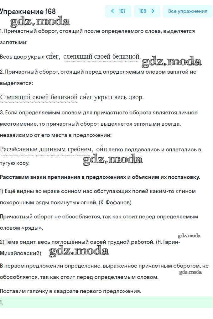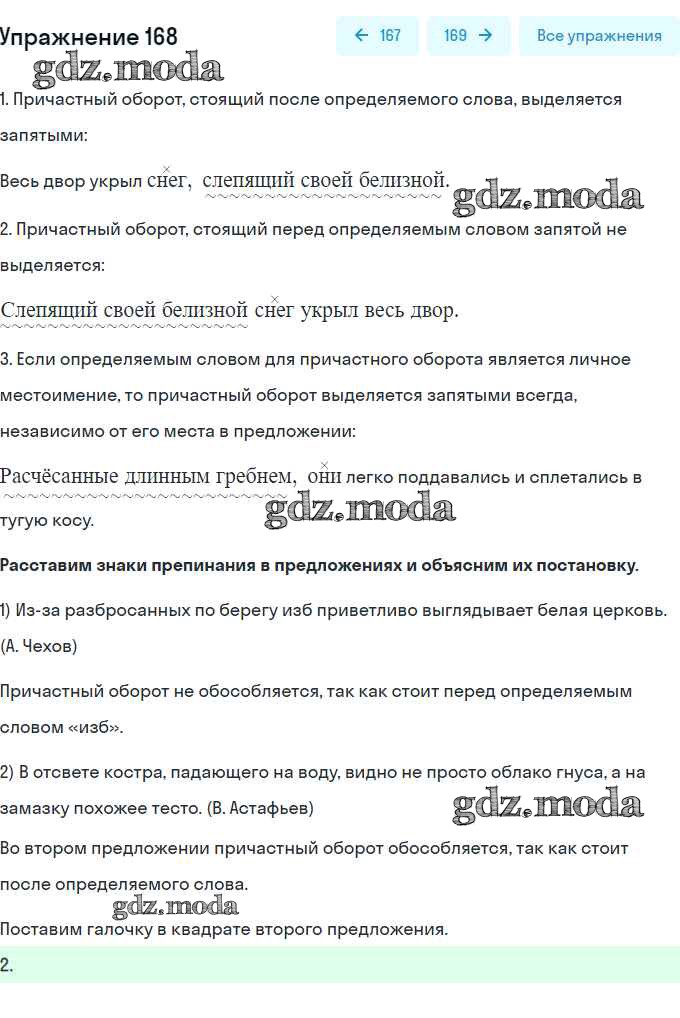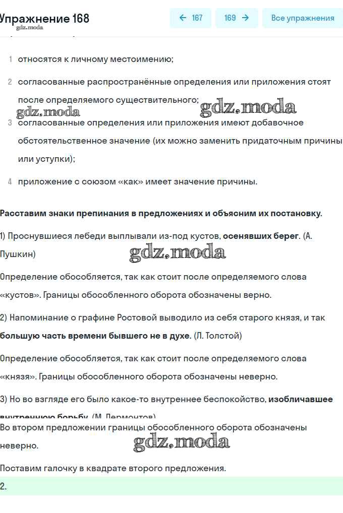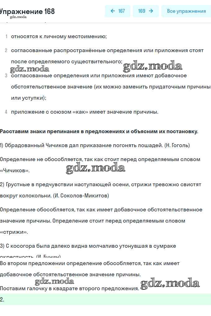 ОТВЕТ на задание № 168 Рабочая тетрадь по Русскому языку 8 класс Литвинова Вертикаль
