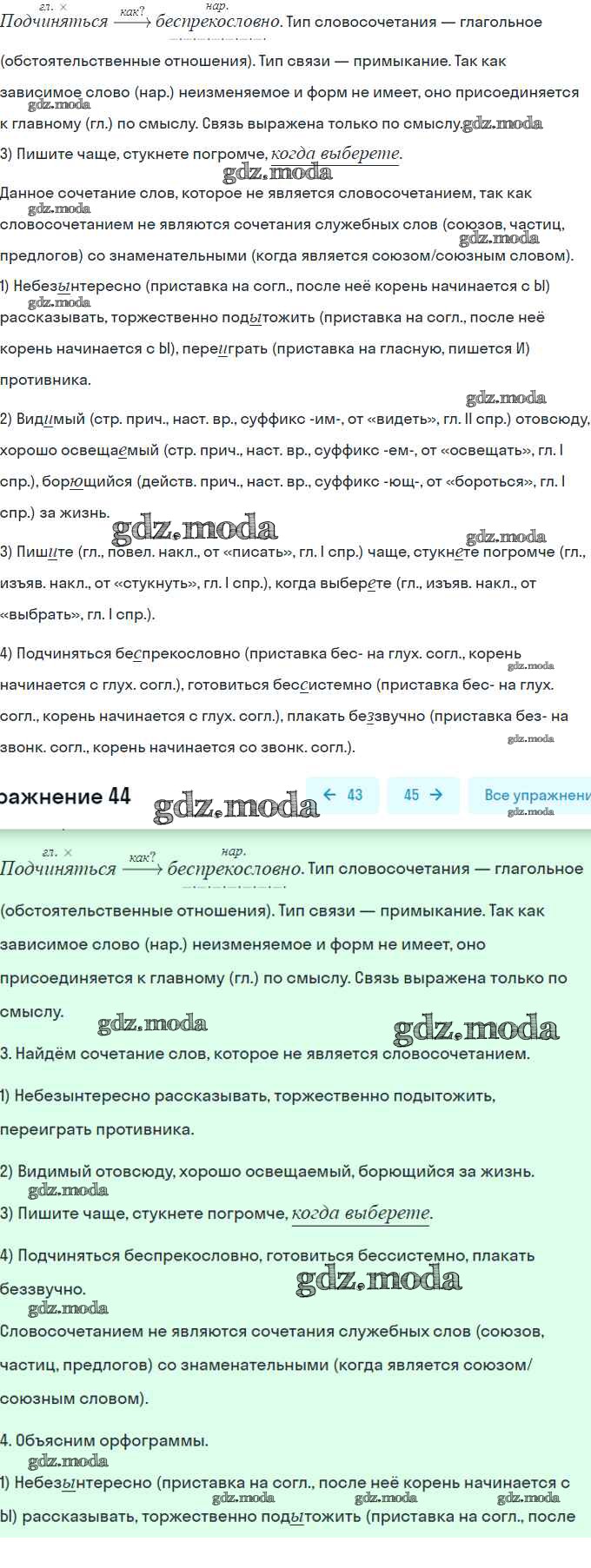 ГДЗ решение к заданию № 44 Русский язык 8 класс рабочая тетрадь Литвинова М.М. (к уч. Разумовской) Дрофа 2017 ФГОС бесплатно на гдз.мода!
