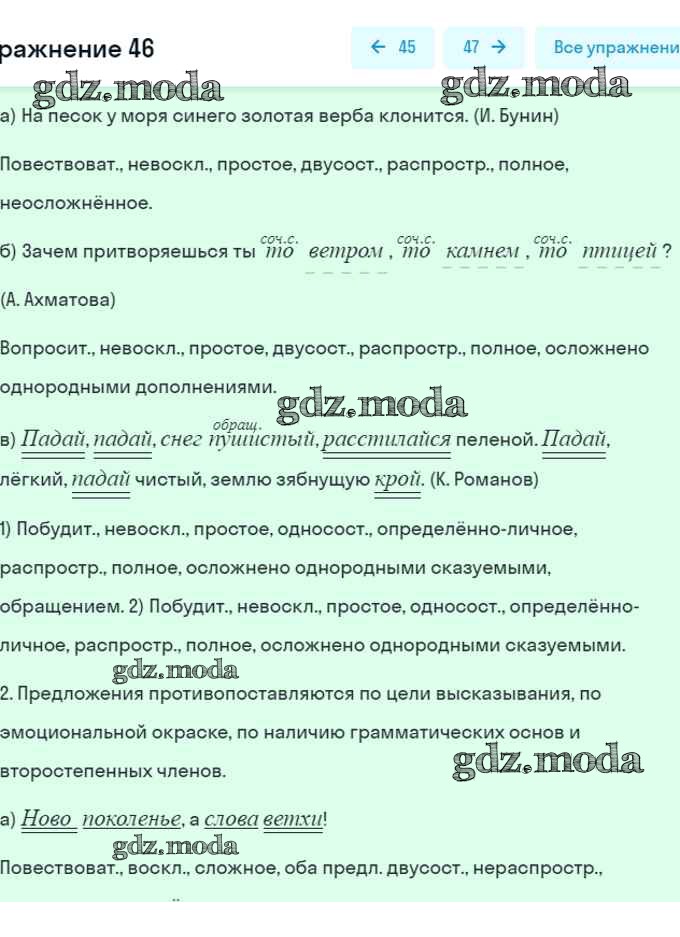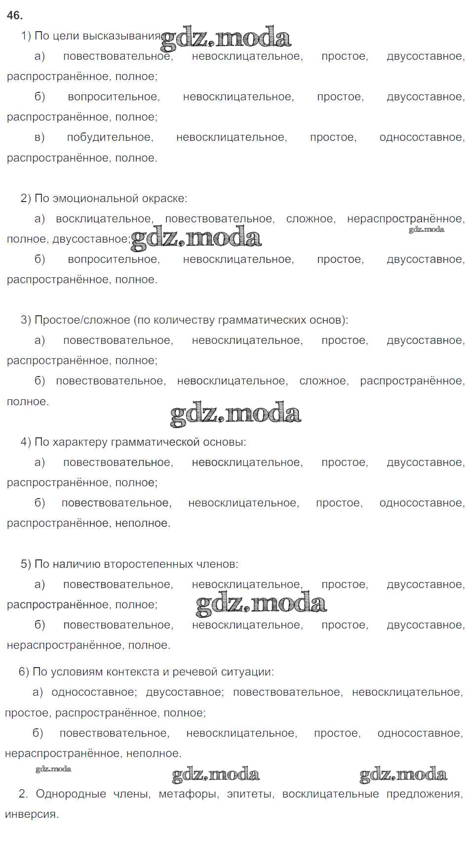 ГДЗ решение к заданию № 46 Русский язык 8 класс рабочая тетрадь Литвинова М.М. (к уч. Разумовской) Дрофа 2017 ФГОС бесплатно на гдз.мода!