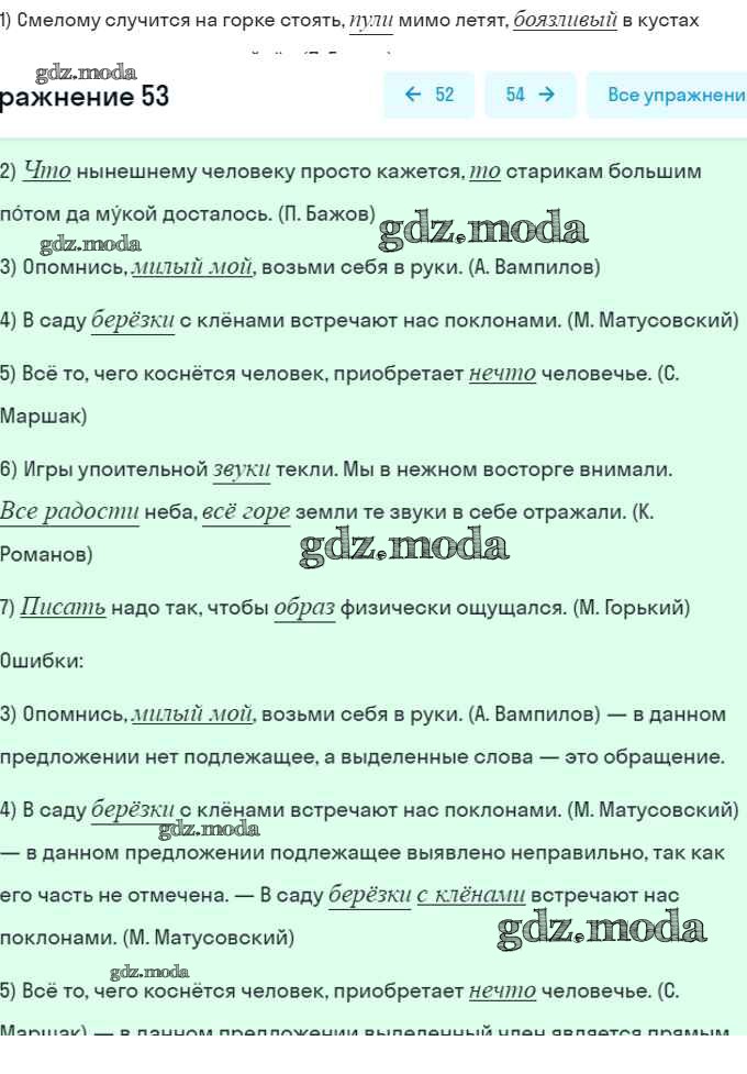 ГДЗ решение к заданию № 53 Русский язык 8 класс рабочая тетрадь Литвинова М.М. (к уч. Разумовской) Дрофа 2017 ФГОС бесплатно на гдз.мода!