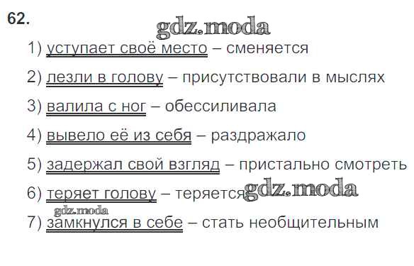 ГДЗ решение к заданию № 62 Русский язык 8 класс рабочая тетрадь Литвинова М.М. (к уч. Разумовской) Дрофа 2017 ФГОС бесплатно на гдз.мода!