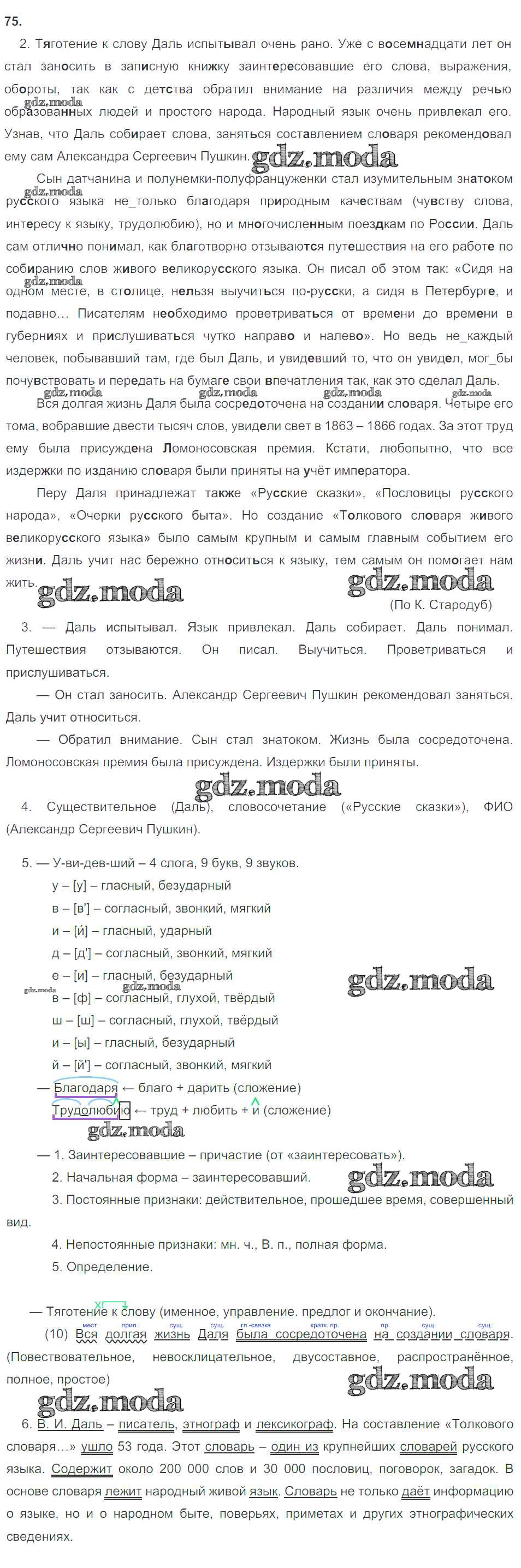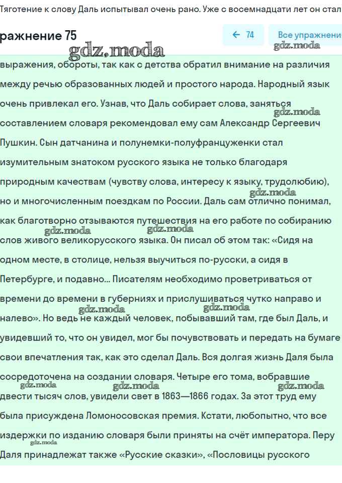ГДЗ решение к заданию № 75 Русский язык 8 класс рабочая тетрадь Литвинова М.М. (к уч. Разумовской) Дрофа 2017 ФГОС бесплатно на гдз.мода!
