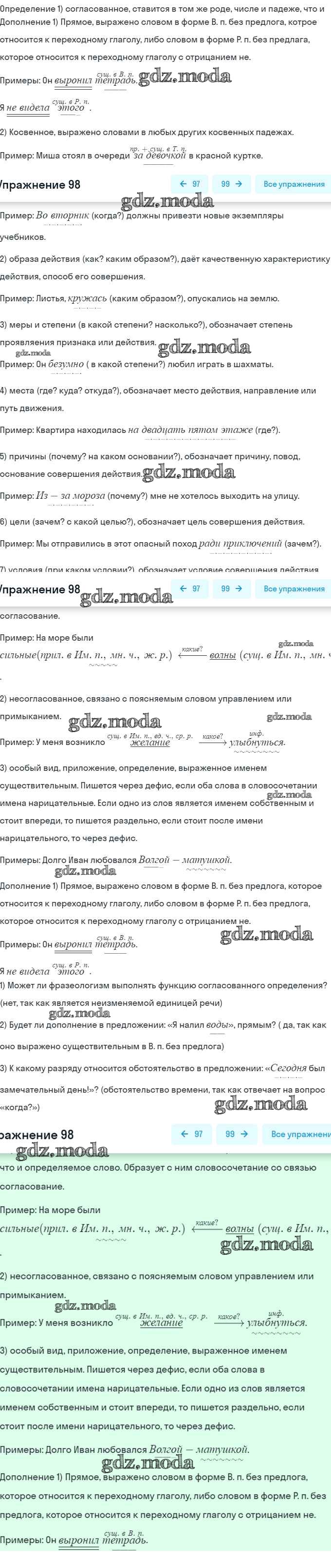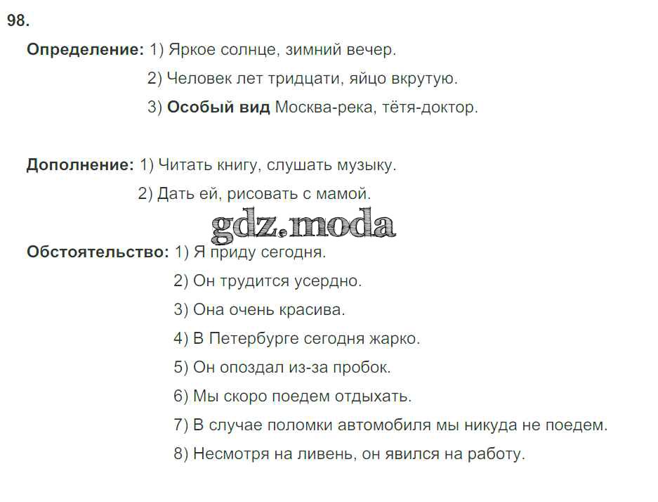 ГДЗ решение к заданию № 98 Русский язык 8 класс рабочая тетрадь Литвинова М.М. (к уч. Разумовской) Дрофа 2017 ФГОС бесплатно на гдз.мода!