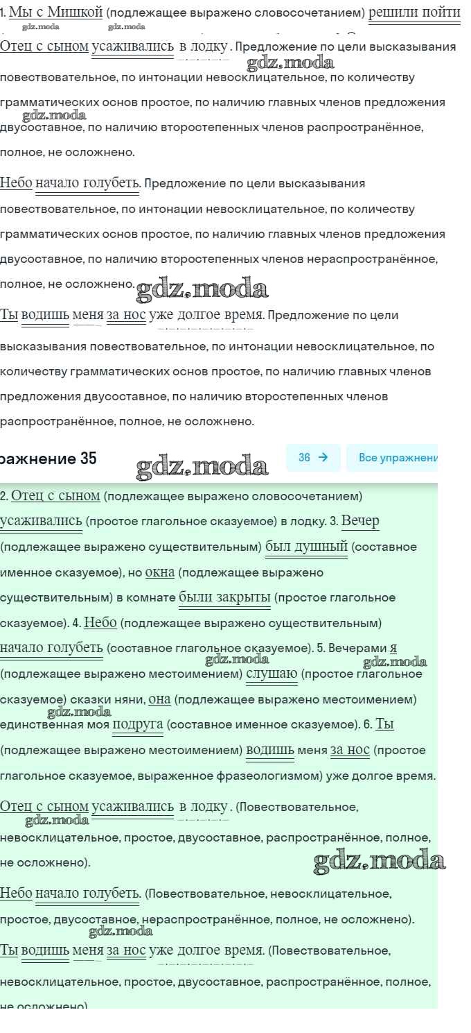 ГДЗ решение к заданию № 35 Русский язык 8 класс рабочая тетрадь Ефремова Е.А. Просвещение, Просвещение 2018, 2022 ФГОС бесплатно на гдз.мода!