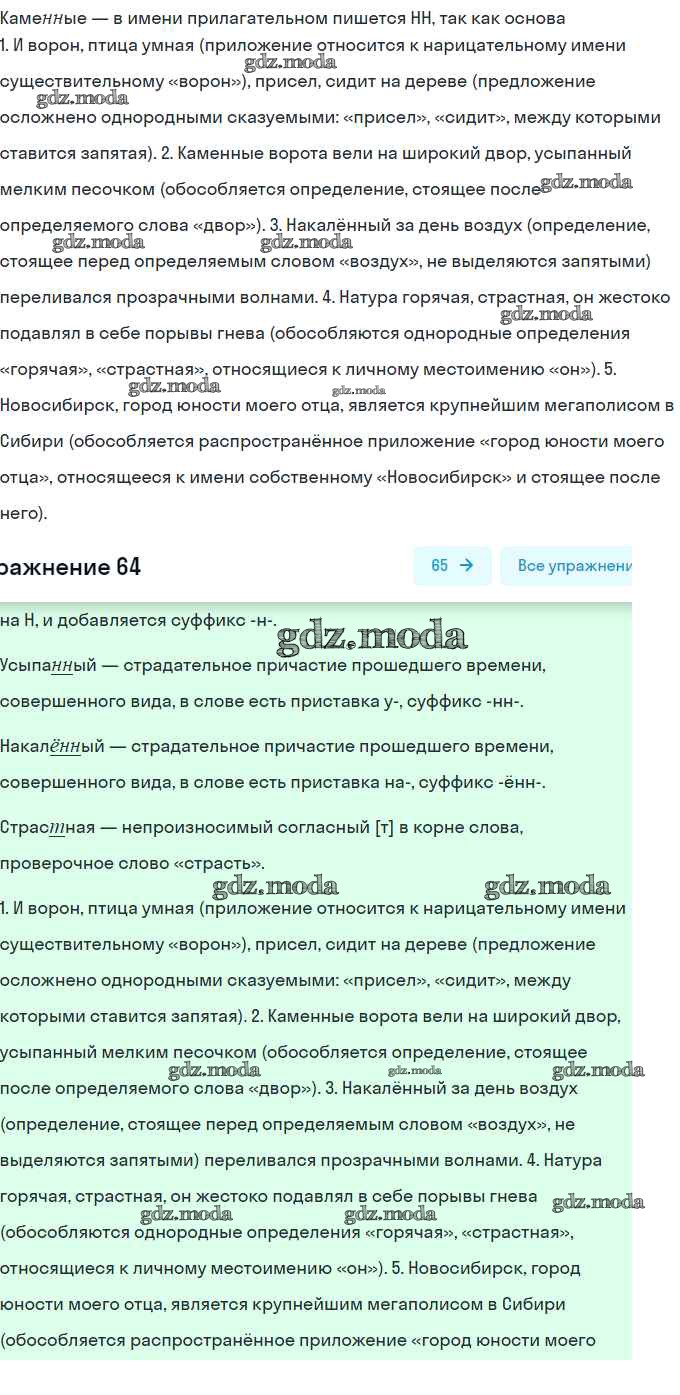 ОТВЕТ на задание № 64 Рабочая тетрадь по Русскому языку 8 класс Ефремова
