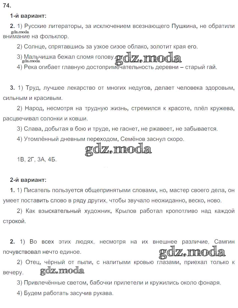 ГДЗ решение к заданию № 74 Русский язык 8 класс рабочая тетрадь Ефремова Е.А. Просвещение, Просвещение 2018, 2022 ФГОС бесплатно на гдз.мода!