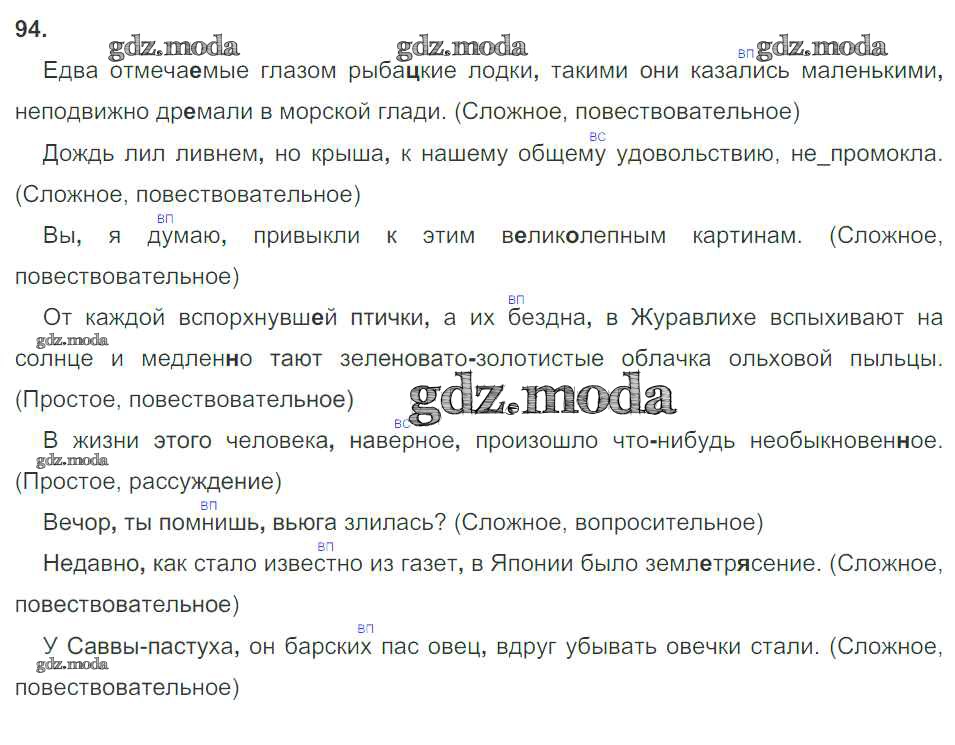 ГДЗ решение к заданию № 94 Русский язык 8 класс рабочая тетрадь Ефремова Е.А. Просвещение, Просвещение 2018, 2022 ФГОС бесплатно на гдз.мода!