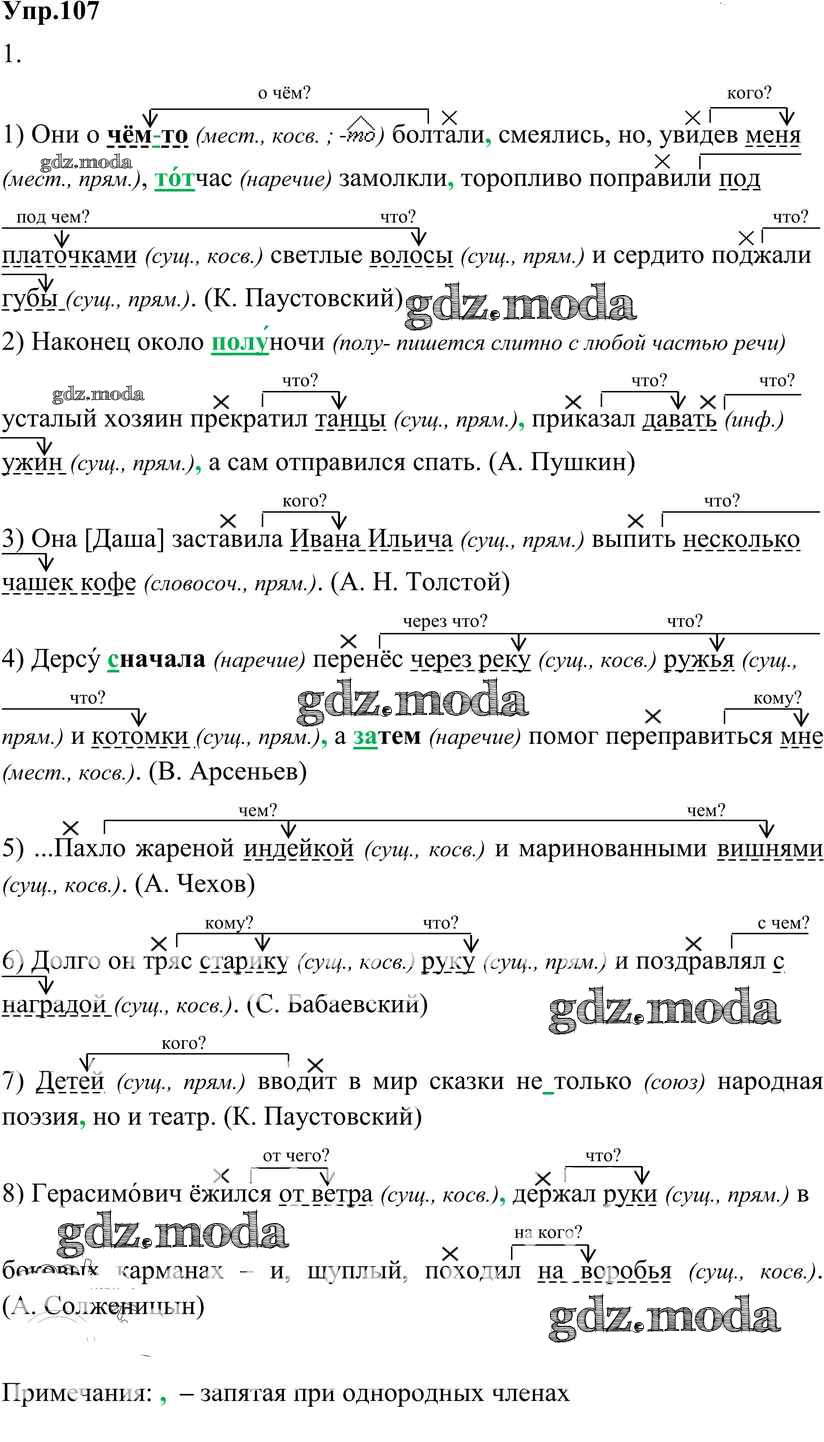 ОТВЕТ на задание № 107 Учебник по Русскому языку 8 класс Разумовская Вертикаль