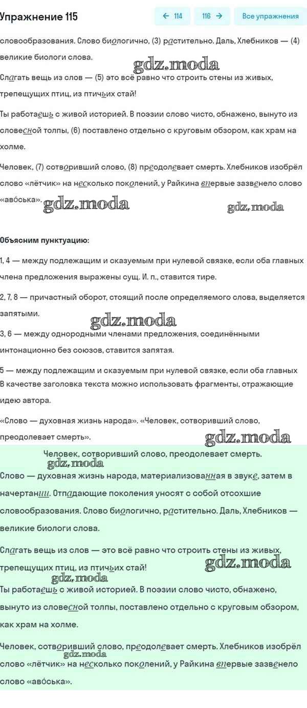 ОТВЕТ на задание № 115 Учебник по Русскому языку 8 класс Разумовская Вертикаль