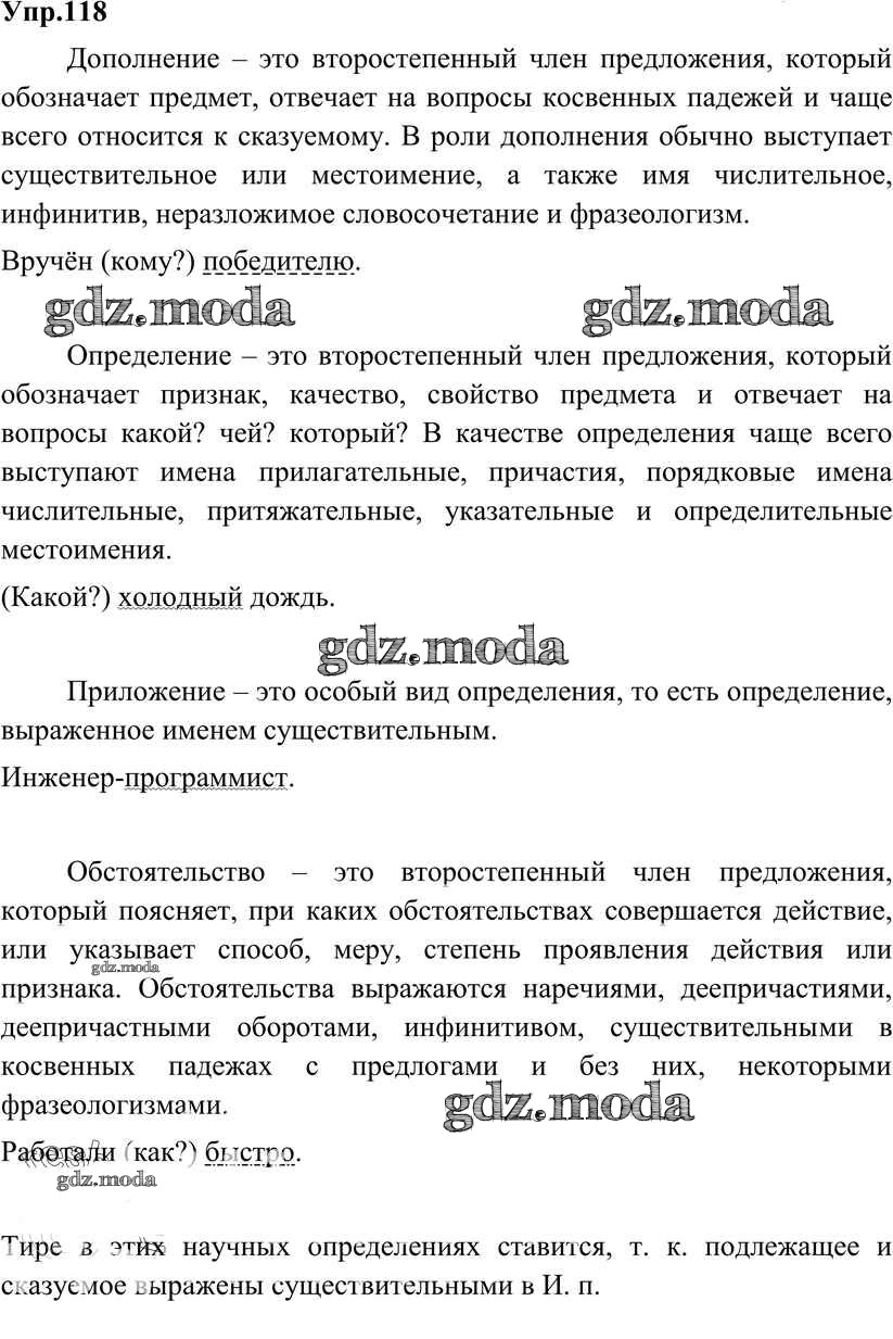 ОТВЕТ на задание № 118 Учебник по Русскому языку 8 класс Разумовская Вертикаль