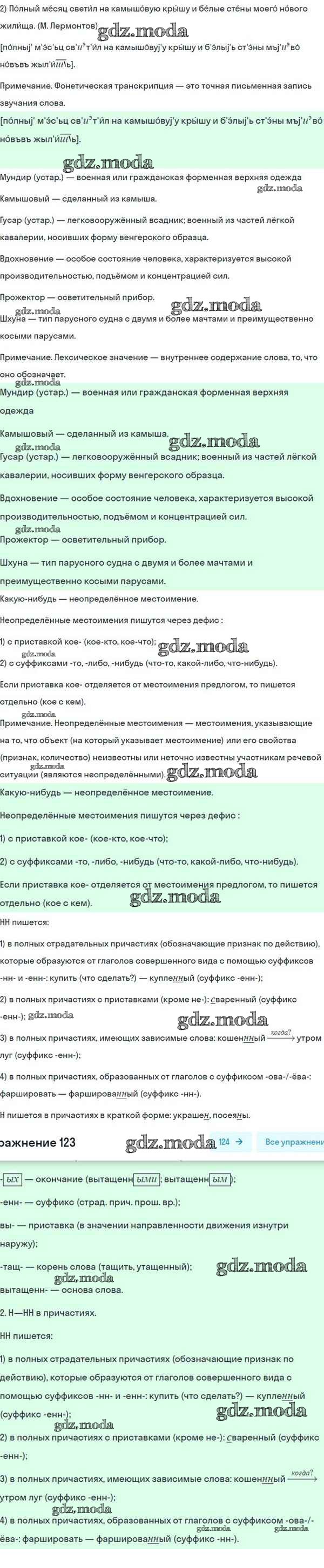 ОТВЕТ на задание № 123 Учебник по Русскому языку 8 класс Разумовская Вертикаль