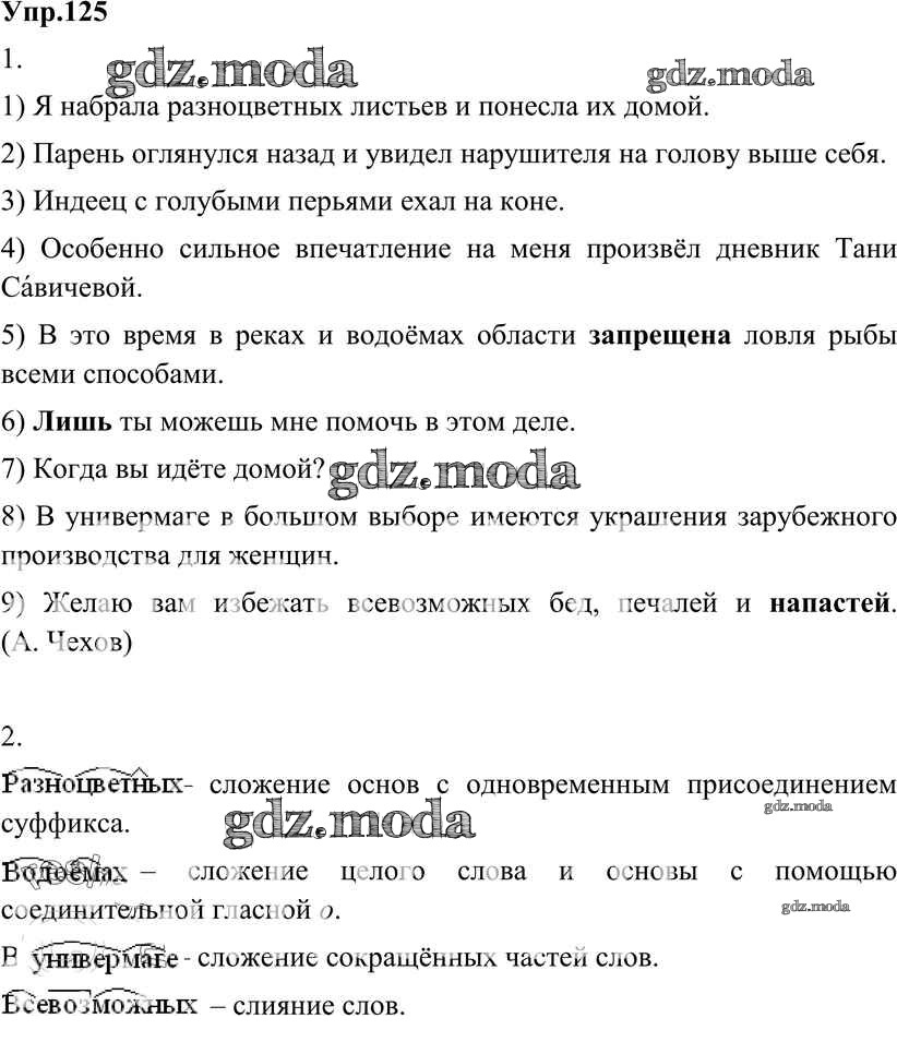ОТВЕТ на задание № 125 Учебник по Русскому языку 8 класс Разумовская Вертикаль