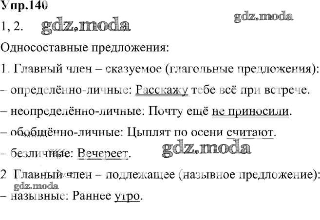 ОТВЕТ на задание № 140 Учебник по Русскому языку 8 класс Разумовская Вертикаль
