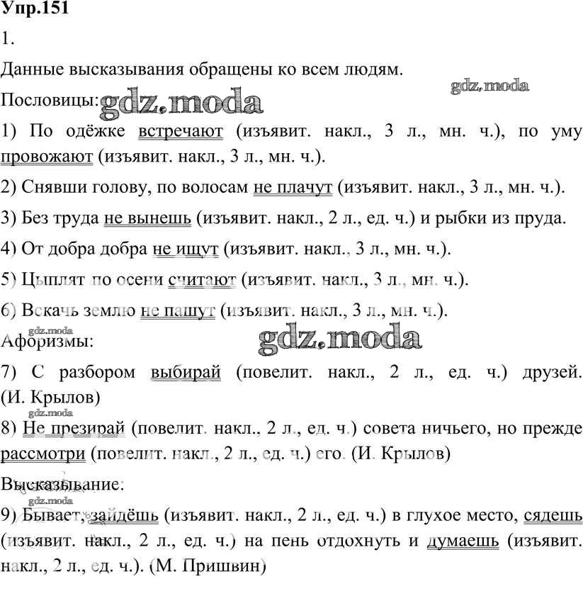 ОТВЕТ на задание № 151 Учебник по Русскому языку 8 класс Разумовская Вертикаль