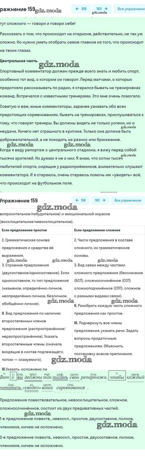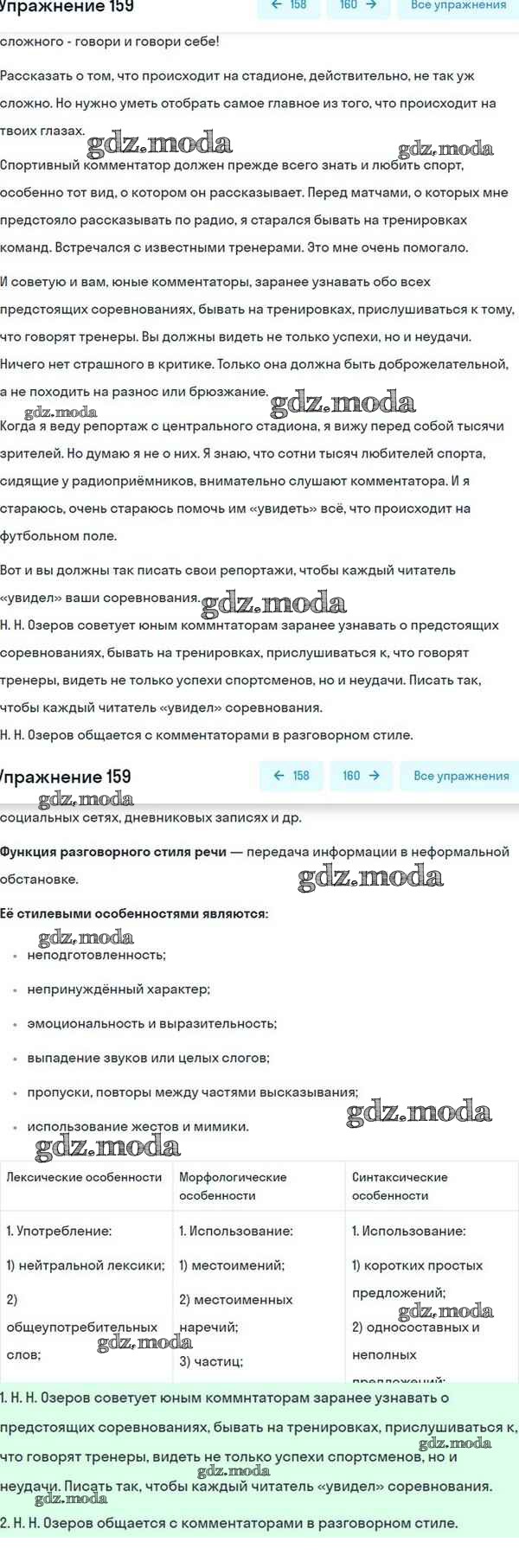 ОТВЕТ на задание № 159 Учебник по Русскому языку 8 класс Разумовская Вертикаль