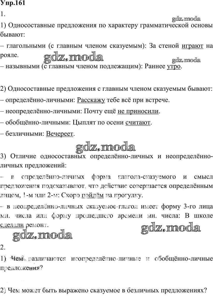 ОТВЕТ на задание № 161 Учебник по Русскому языку 8 класс Разумовская Вертикаль