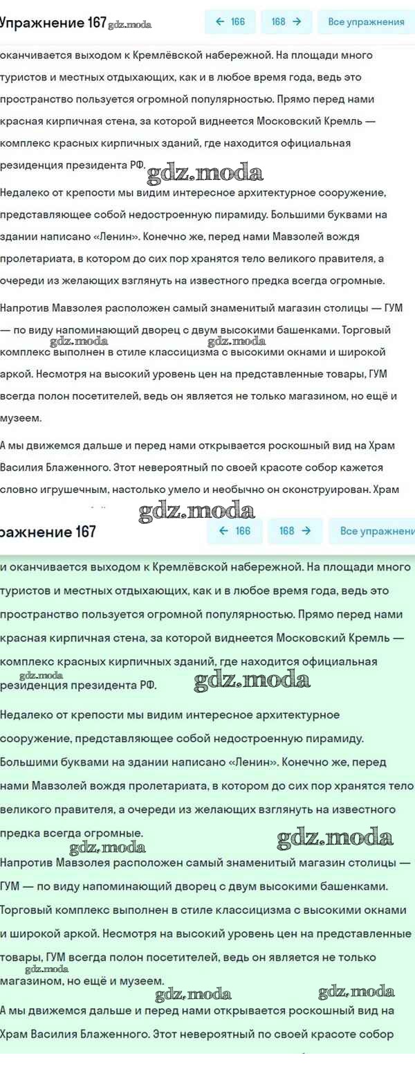 ОТВЕТ на задание № 167 Учебник по Русскому языку 8 класс Разумовская Вертикаль