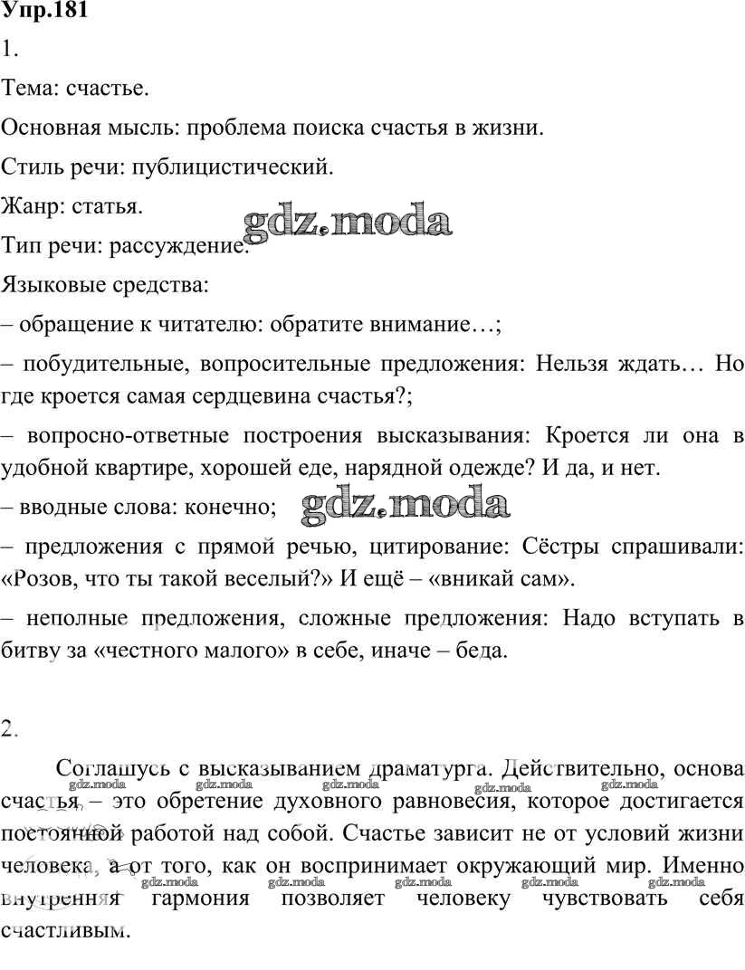 ОТВЕТ на задание № 181 Учебник по Русскому языку 8 класс Разумовская Вертикаль