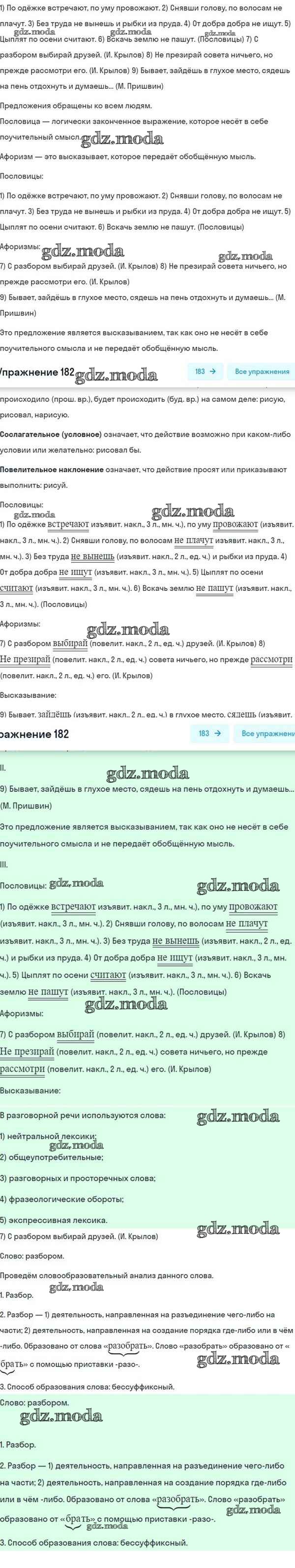 ОТВЕТ на задание № 182 Учебник по Русскому языку 8 класс Разумовская Вертикаль