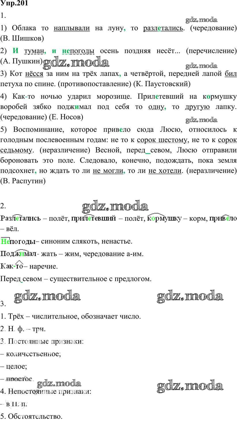 ОТВЕТ на задание № 201 Учебник по Русскому языку 8 класс Разумовская Вертикаль