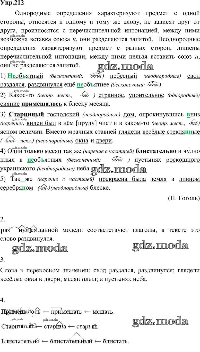 ОТВЕТ на задание № 212 Учебник по Русскому языку 8 класс Разумовская Вертикаль