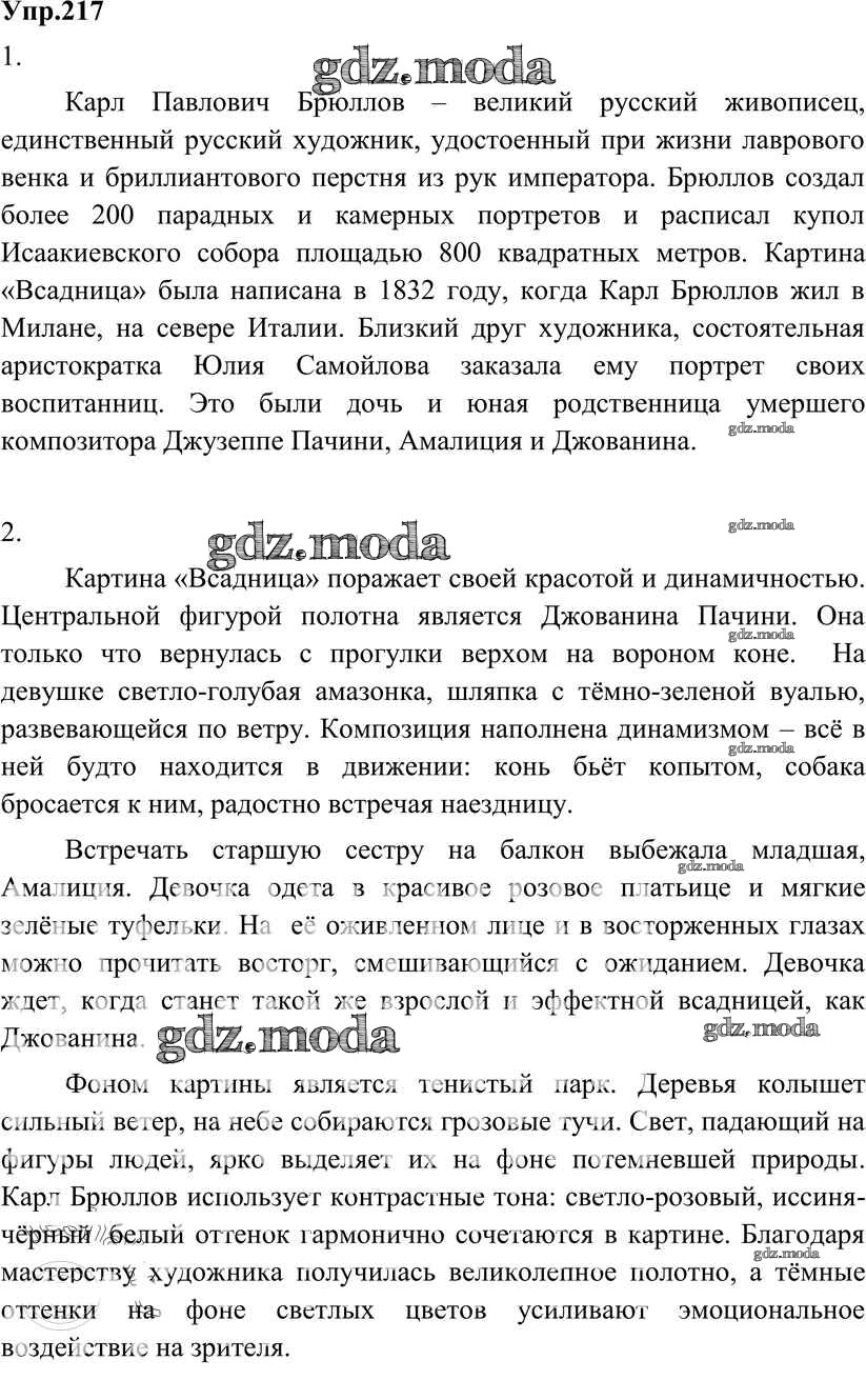 ОТВЕТ на задание № 217 Учебник по Русскому языку 8 класс Разумовская Вертикаль