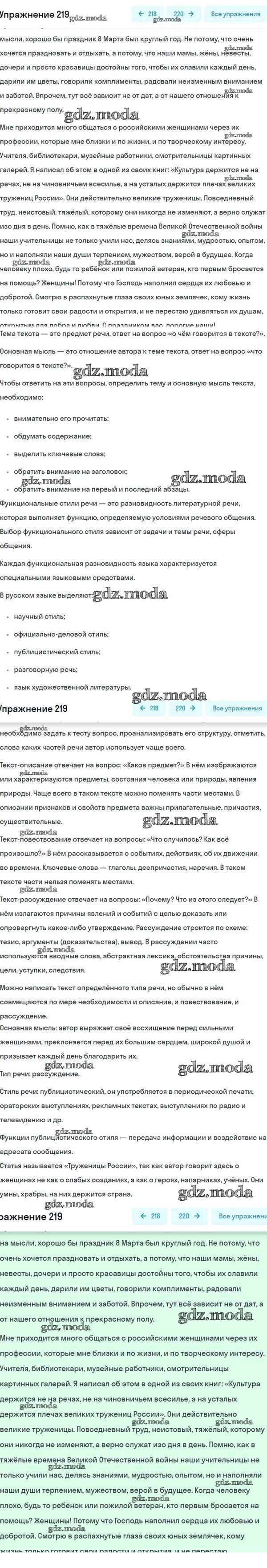 ОТВЕТ на задание № 219 Учебник по Русскому языку 8 класс Разумовская Вертикаль
