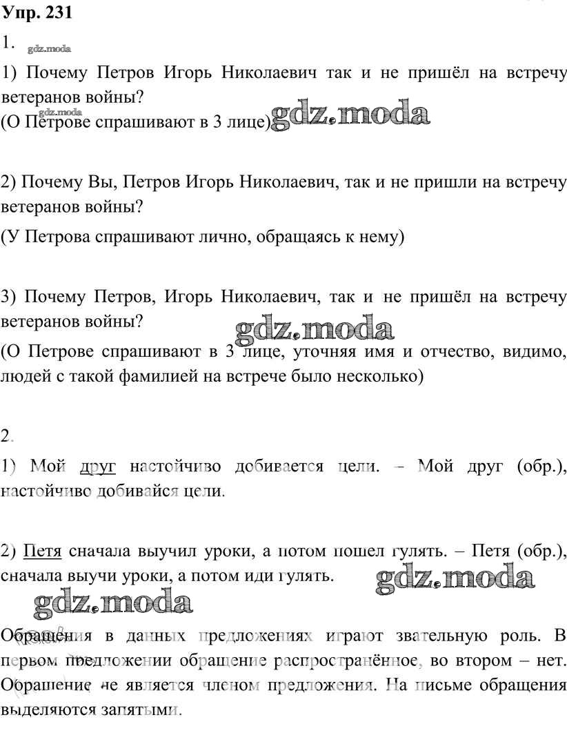 ОТВЕТ на задание № 231 Учебник по Русскому языку 8 класс Разумовская Вертикаль