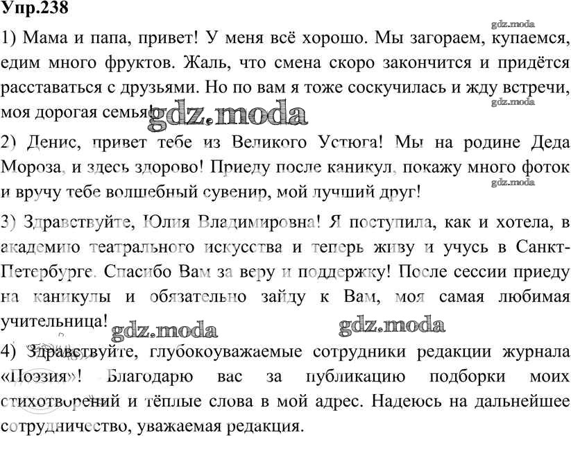ОТВЕТ на задание № 238 Учебник по Русскому языку 8 класс Разумовская Вертикаль