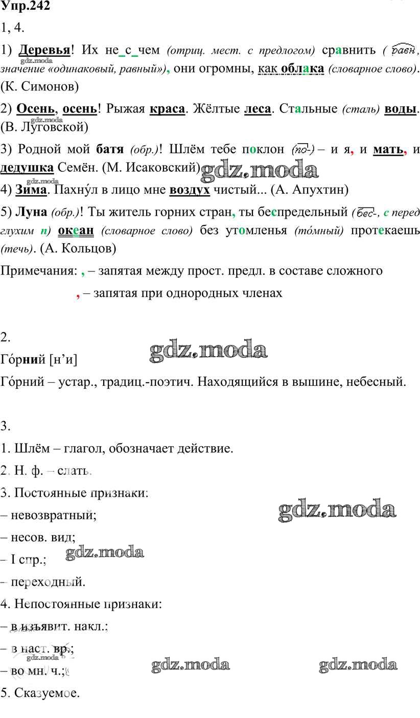 ОТВЕТ на задание № 242 Учебник по Русскому языку 8 класс Разумовская Вертикаль