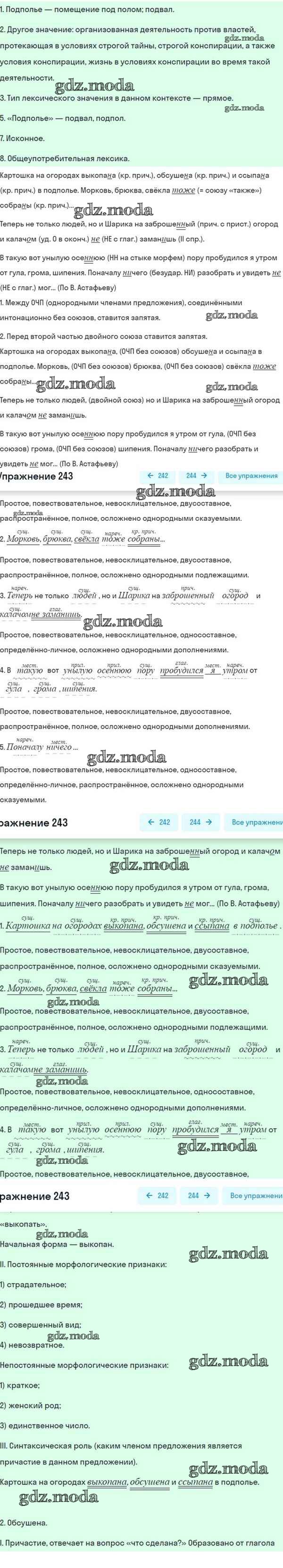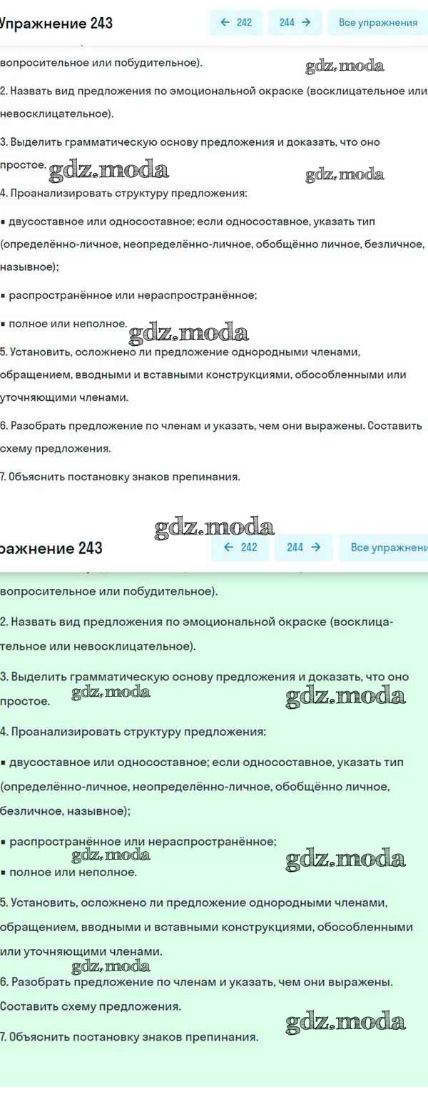 ОТВЕТ на задание № 243 Учебник по Русскому языку 8 класс Разумовская Вертикаль