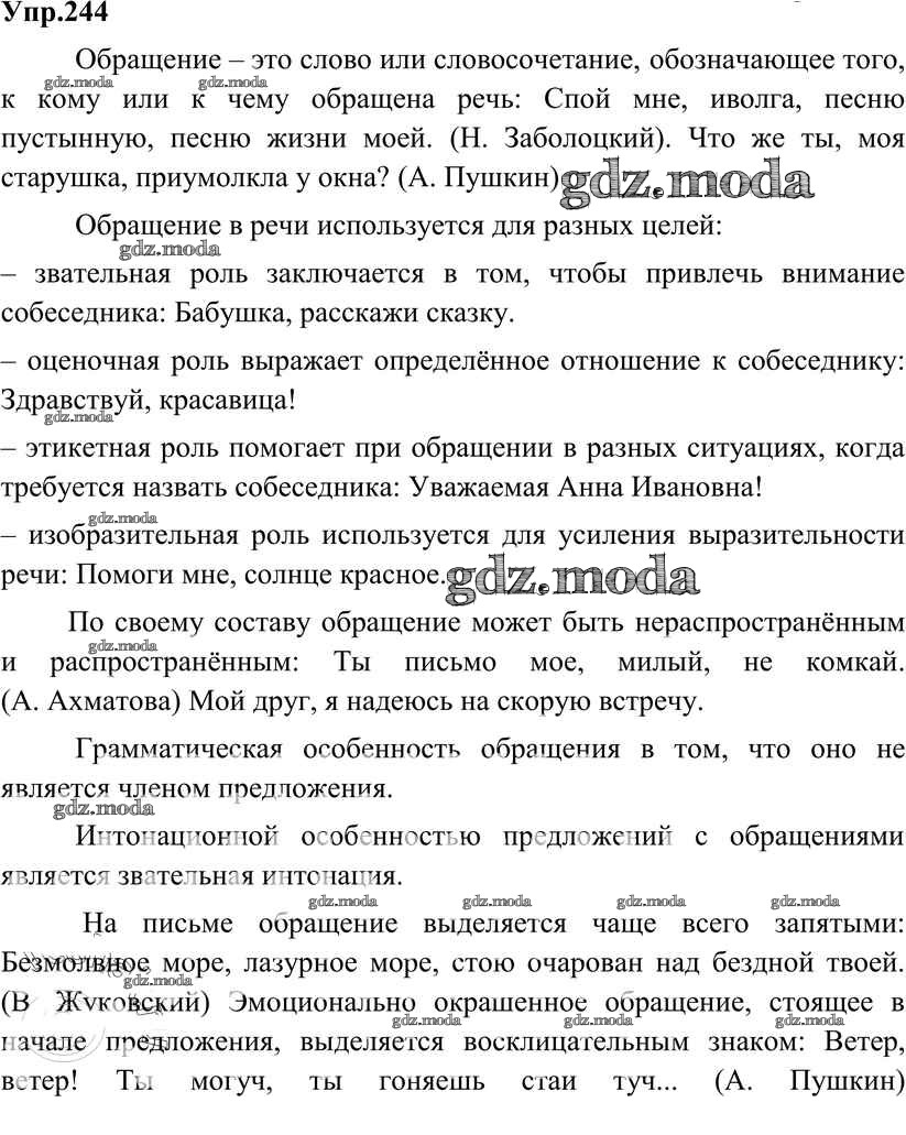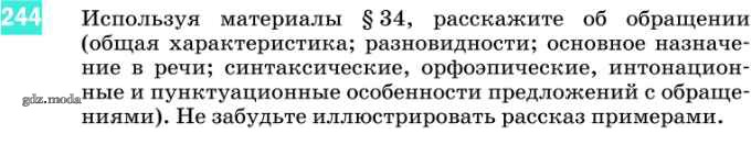 ОТВЕТ на задание № 244 Учебник по Русскому языку 8 класс Разумовская Вертикаль