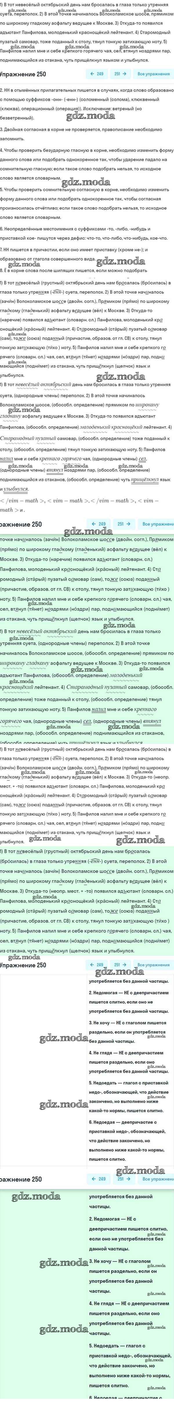 ОТВЕТ на задание № 250 Учебник по Русскому языку 8 класс Разумовская Вертикаль