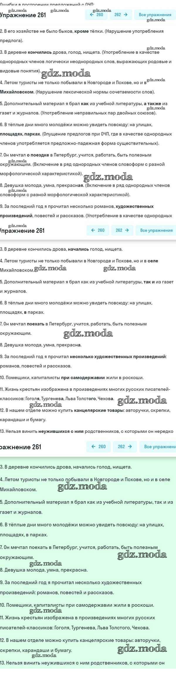 ОТВЕТ на задание № 261 Учебник по Русскому языку 8 класс Разумовская Вертикаль