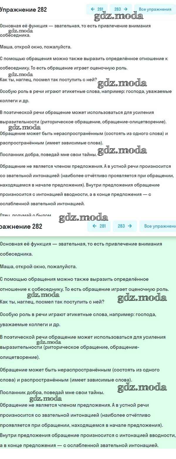 ОТВЕТ на задание № 282 Учебник по Русскому языку 8 класс Разумовская Вертикаль