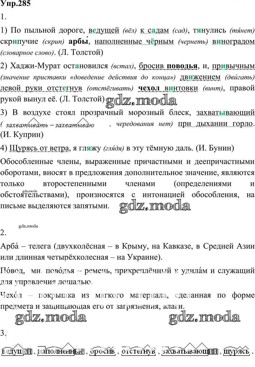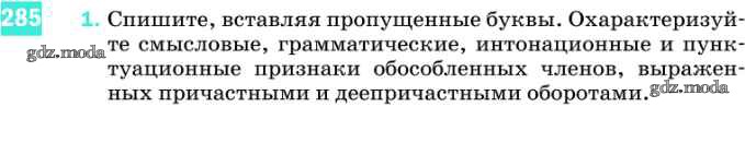 ОТВЕТ на задание № 285 Учебник по Русскому языку 8 класс Разумовская Вертикаль