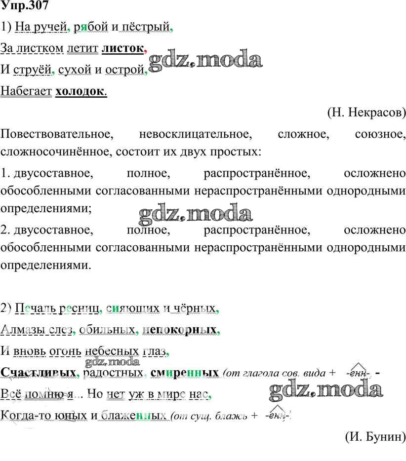 ОТВЕТ на задание № 307 Учебник по Русскому языку 8 класс Разумовская Вертикаль