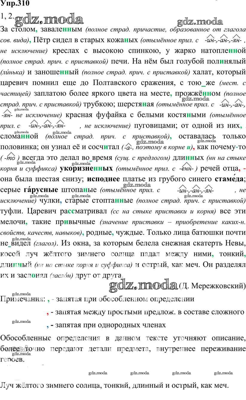 ОТВЕТ на задание № 310 Учебник по Русскому языку 8 класс Разумовская Вертикаль