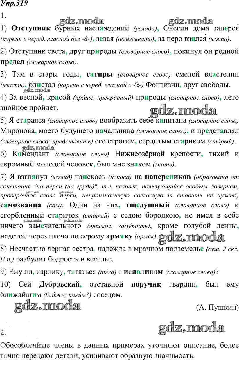 ОТВЕТ на задание № 319 Учебник по Русскому языку 8 класс Разумовская Вертикаль