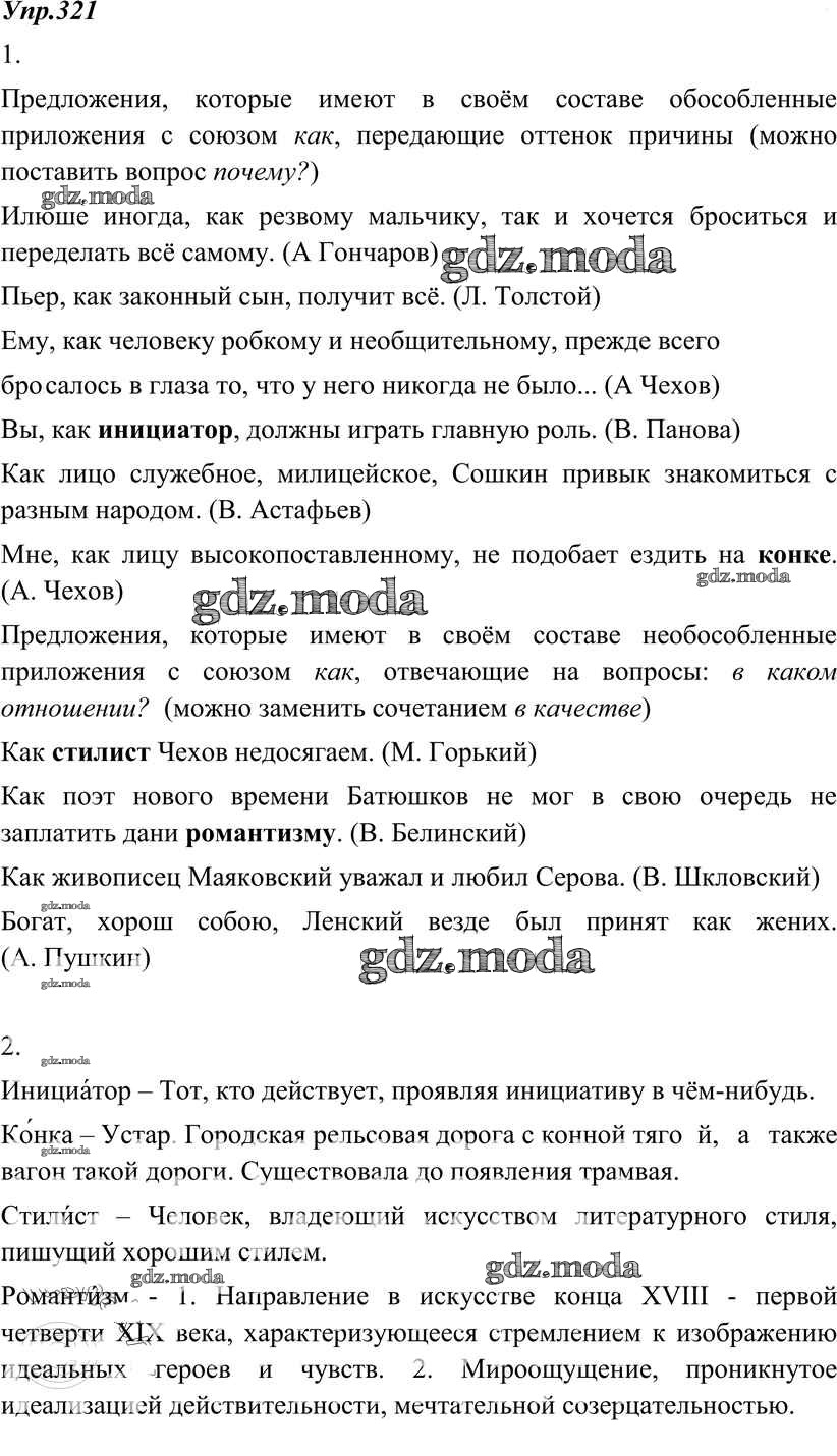 ОТВЕТ на задание № 321 Учебник по Русскому языку 8 класс Разумовская Вертикаль