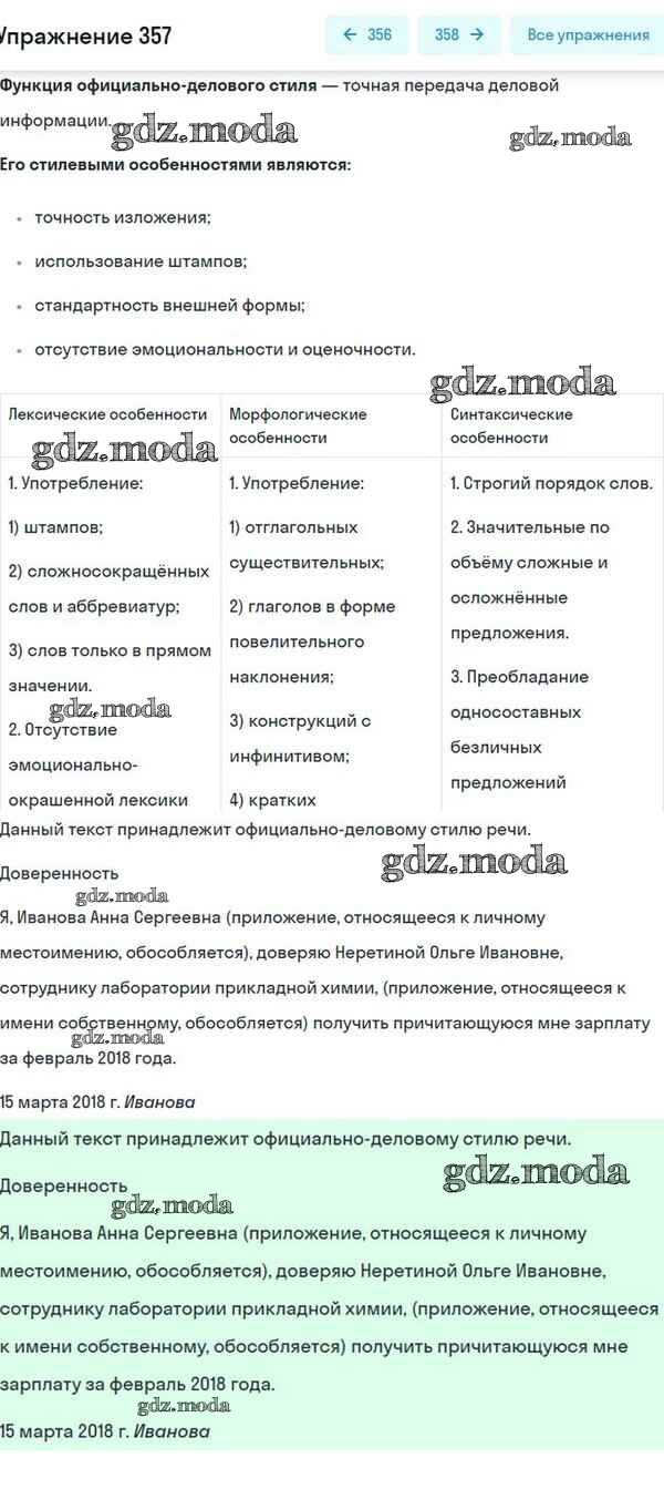 ОТВЕТ на задание № 357 Учебник по Русскому языку 8 класс Разумовская Вертикаль