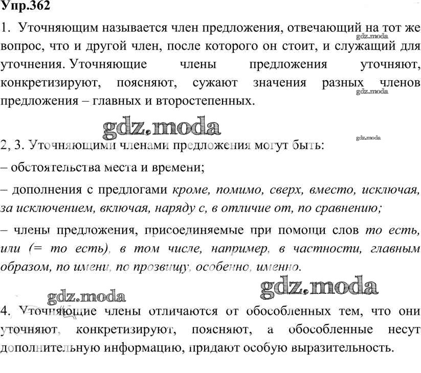 ОТВЕТ на задание № 362 Учебник по Русскому языку 8 класс Разумовская Вертикаль
