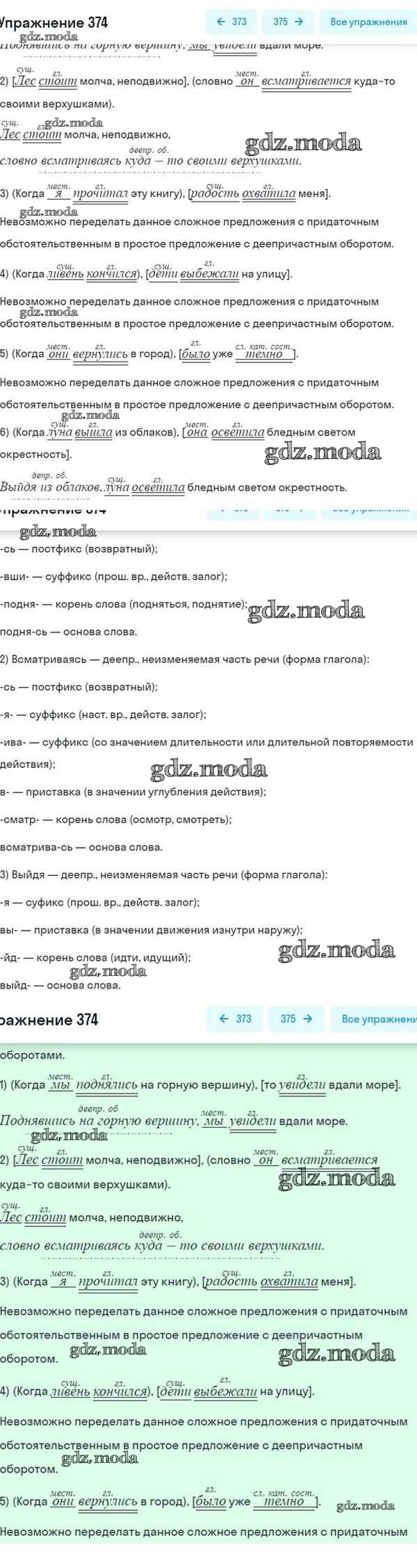 ОТВЕТ на задание № 374 Учебник по Русскому языку 8 класс Разумовская Вертикаль