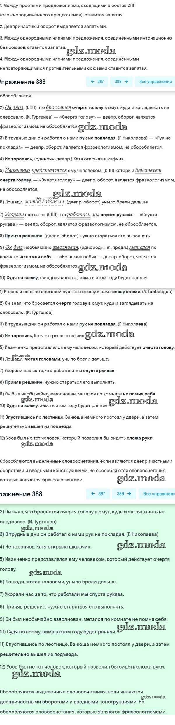 ОТВЕТ на задание № 388 Учебник по Русскому языку 8 класс Разумовская Вертикаль