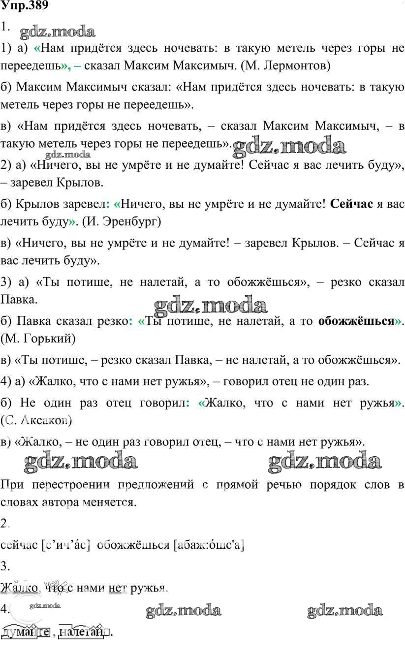 ОТВЕТ на задание № 389 Учебник по Русскому языку 8 класс Разумовская Вертикаль