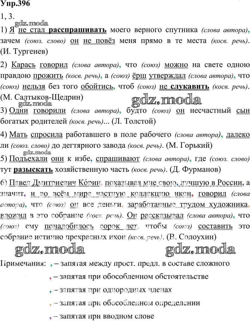 ОТВЕТ на задание № 396 Учебник по Русскому языку 8 класс Разумовская Вертикаль