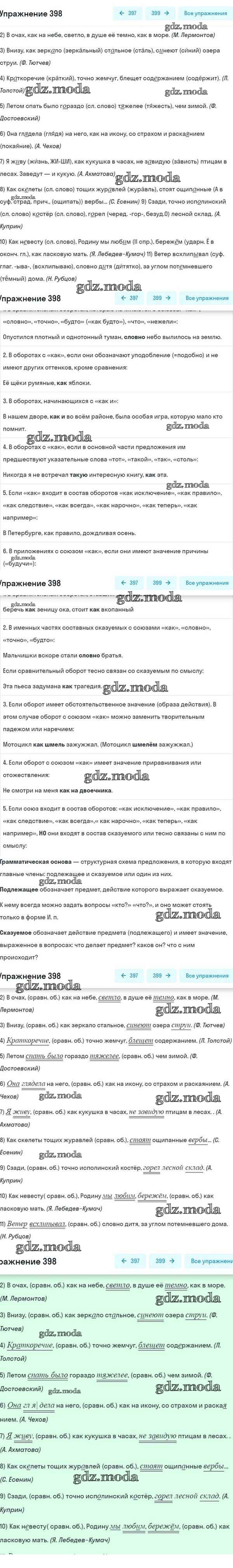 ОТВЕТ на задание № 398 Учебник по Русскому языку 8 класс Разумовская Вертикаль