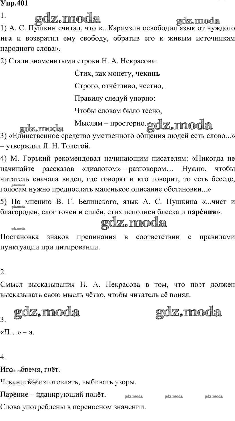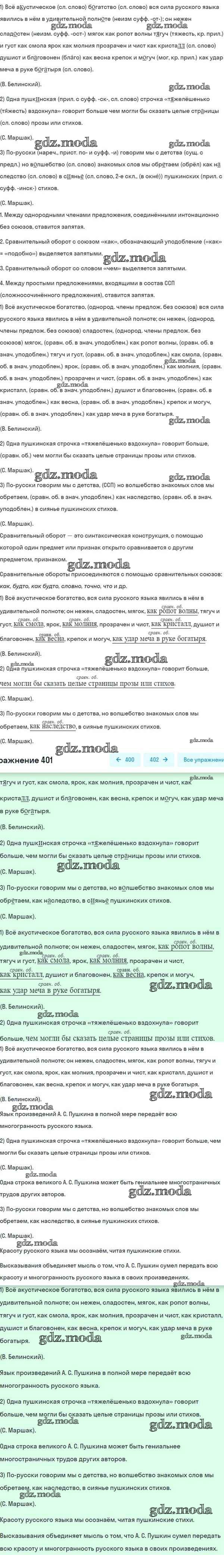 ОТВЕТ на задание № 401 Учебник по Русскому языку 8 класс Разумовская Вертикаль