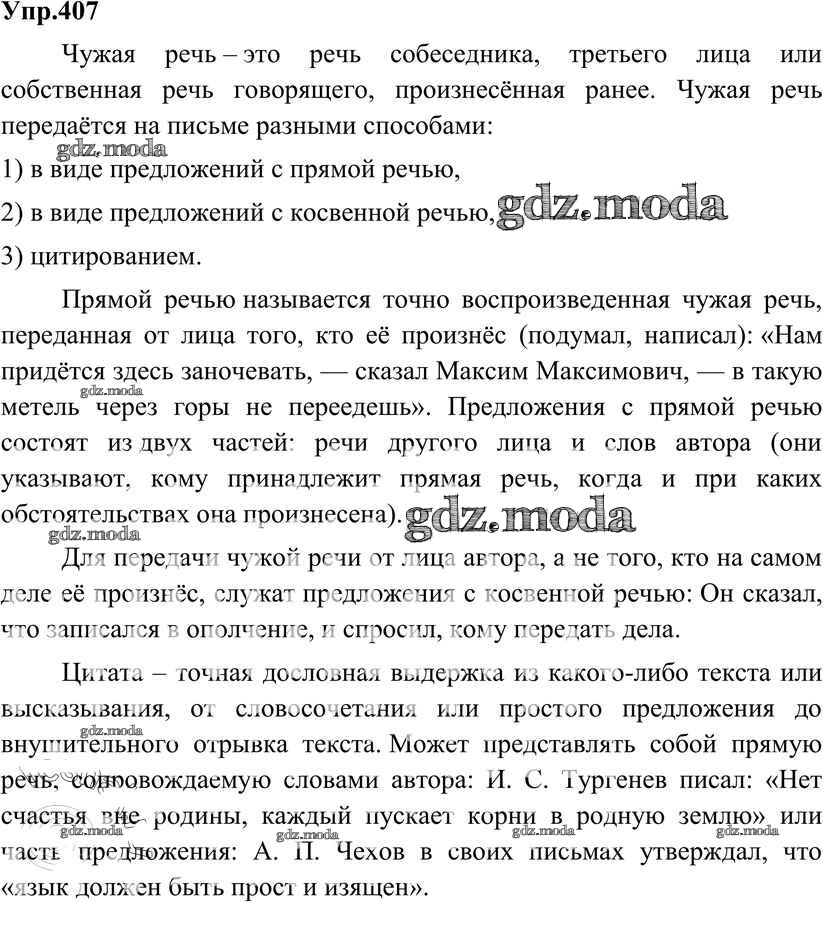 ОТВЕТ на задание № 407 Учебник по Русскому языку 8 класс Разумовская Вертикаль