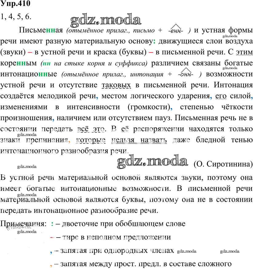 ОТВЕТ на задание № 410 Учебник по Русскому языку 8 класс Разумовская Вертикаль